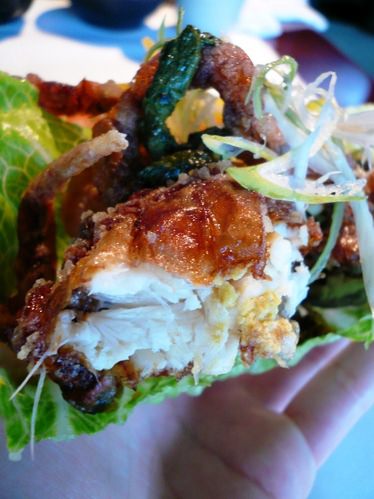 原以為會很油膩,用生菜包軟殼蟹卻很清爽,很香很好吃,補充甲殼素