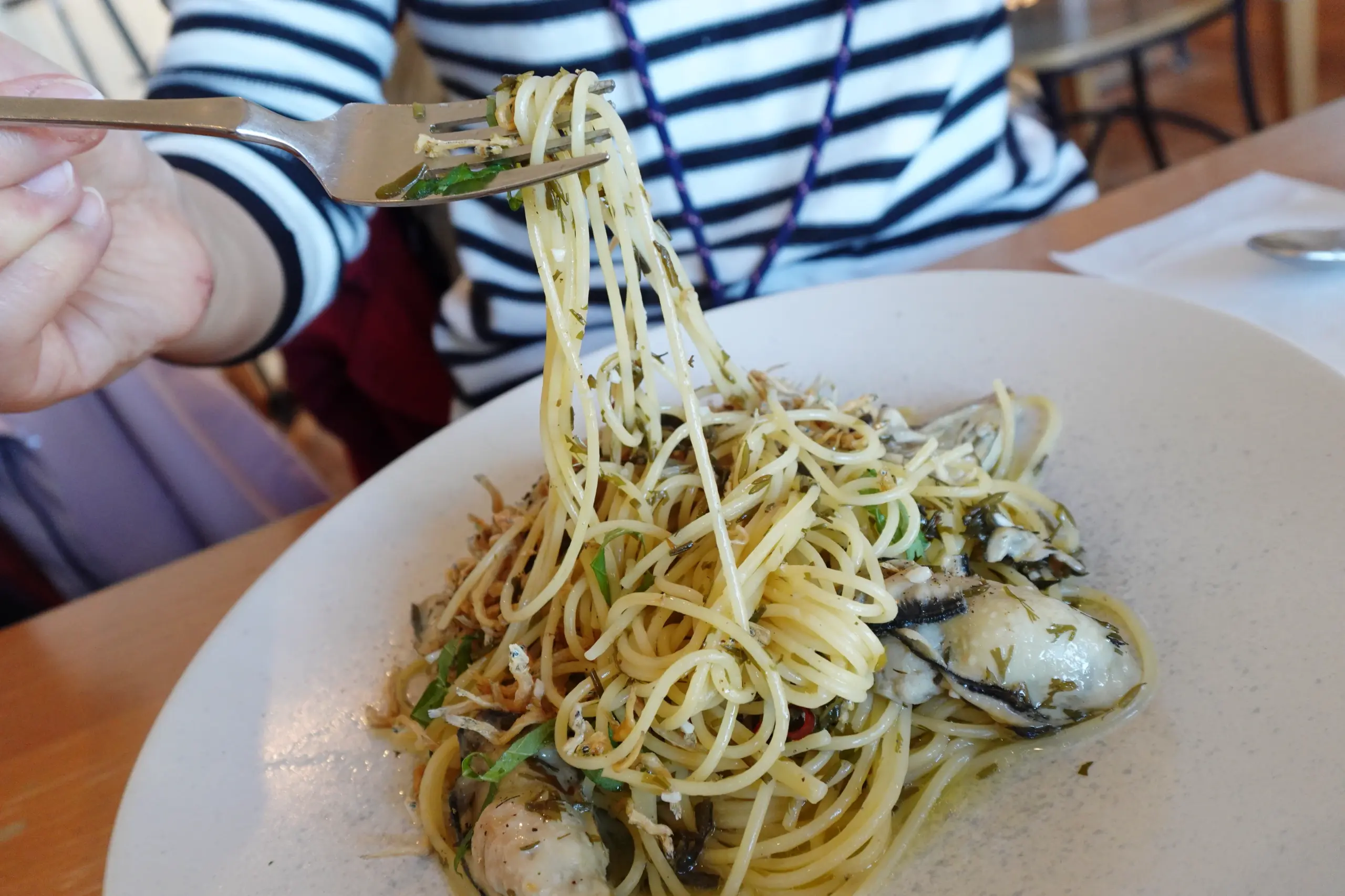 Oli pasta( oyster&whitebait&seaweed)
