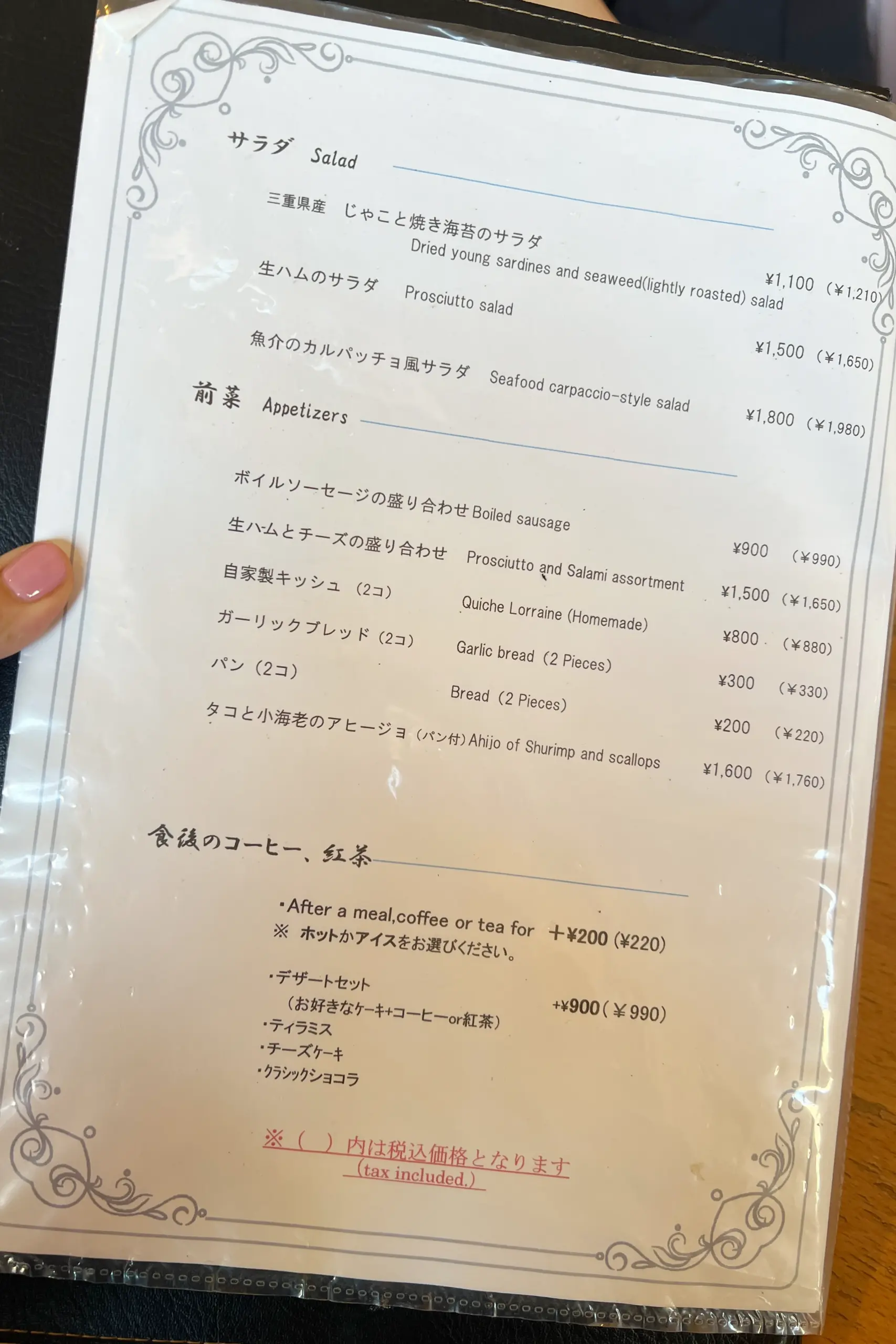 日文及英文對照的菜單