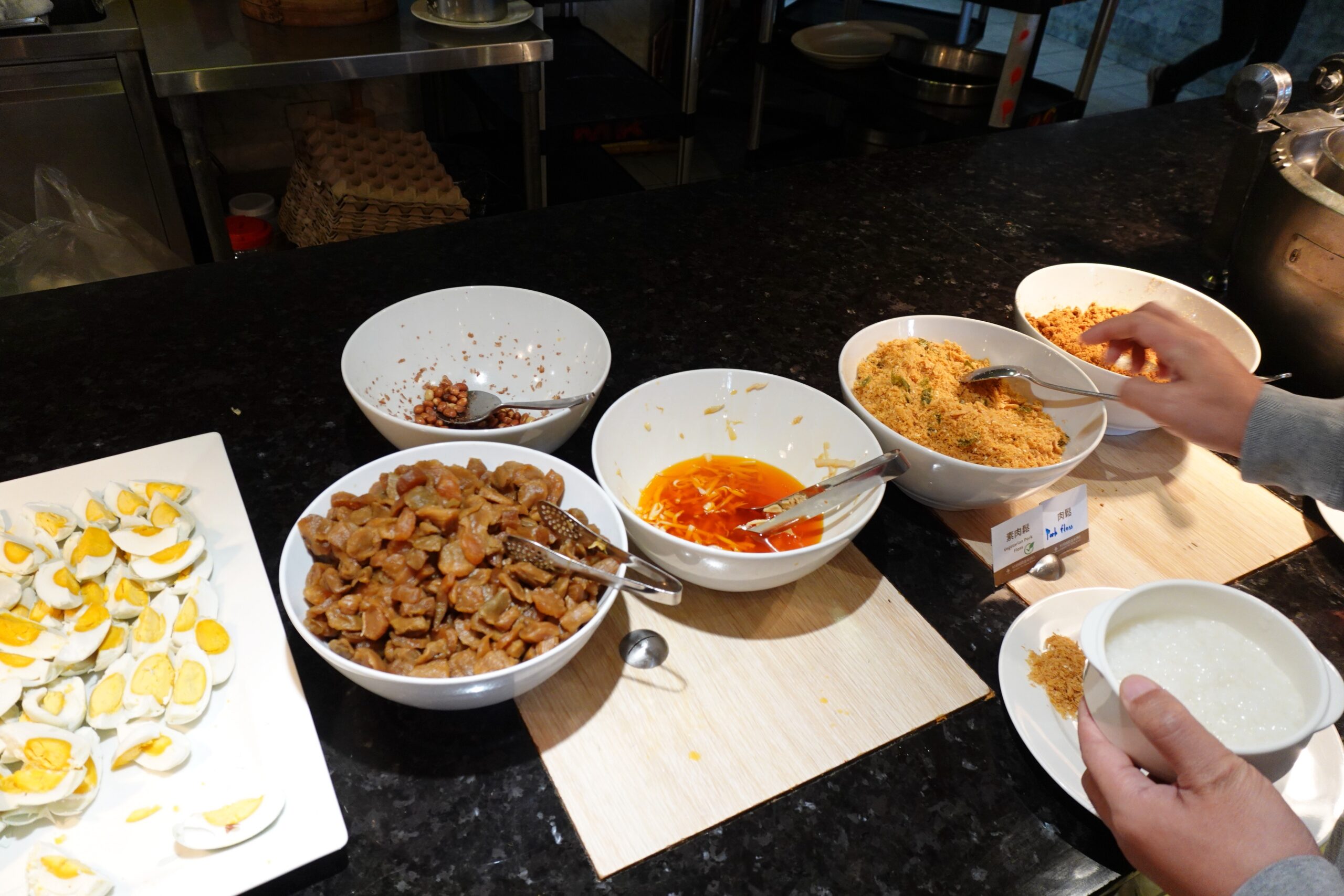 早餐蠻豐盛的有清粥小菜、現作擔仔麵跟牛肉湯、各式麵包,