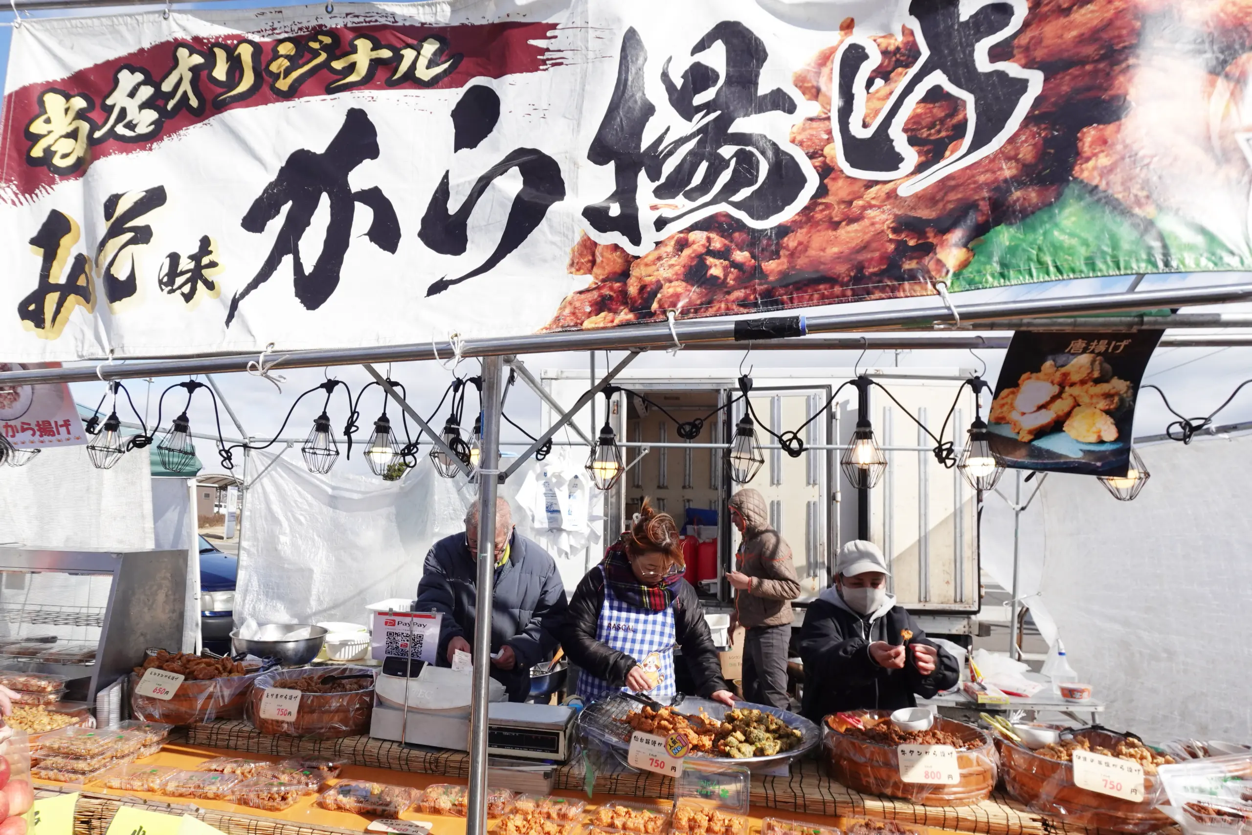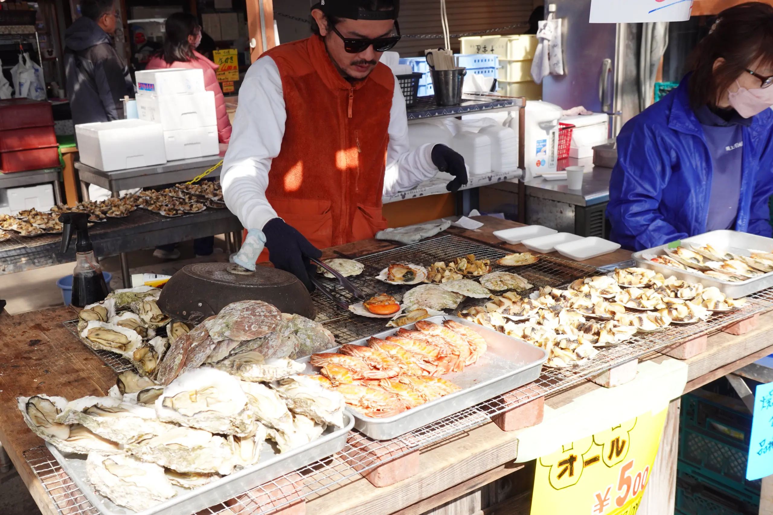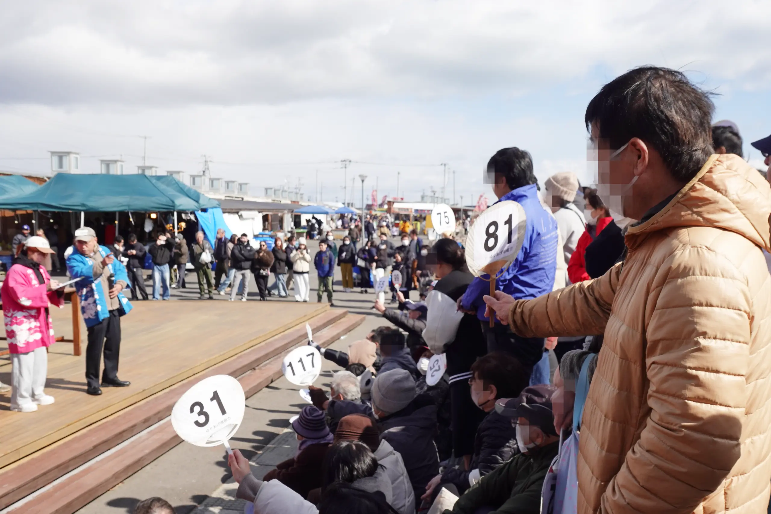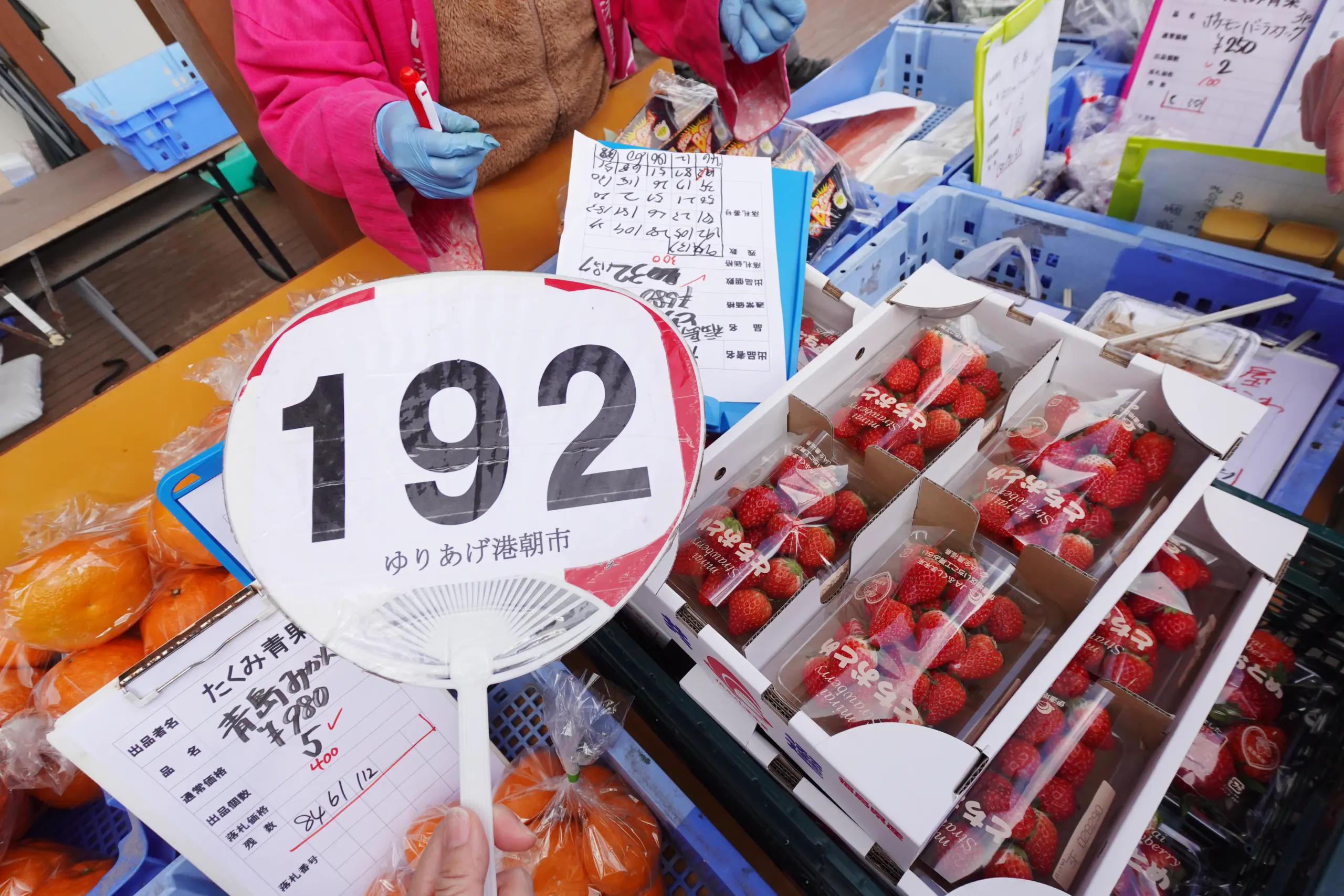 google map詳細資訊 閖上港朝市是宮城縣名取市非常有名的漁港早市,聚集約50家攤位,主要販售新鮮海鮮、當地農產品,以及各種現做小,是當地人週日早上會來採買與吃早餐的地方。市場最大的特色是漁港直送海鮮,現場也有炭火爐邊燒烤區,可以把剛買到的海鮮直接烤來吃。朝市還有一個很有趣的拍賣活動(舉牌競標),遊客也可以參加,主持人都是用日文介紹商品及拍賣價格,聽不懂沒關係,通常拍賣價都是售價的一半左右,建議有喜歡的商品就趕快舉牌搶標!
