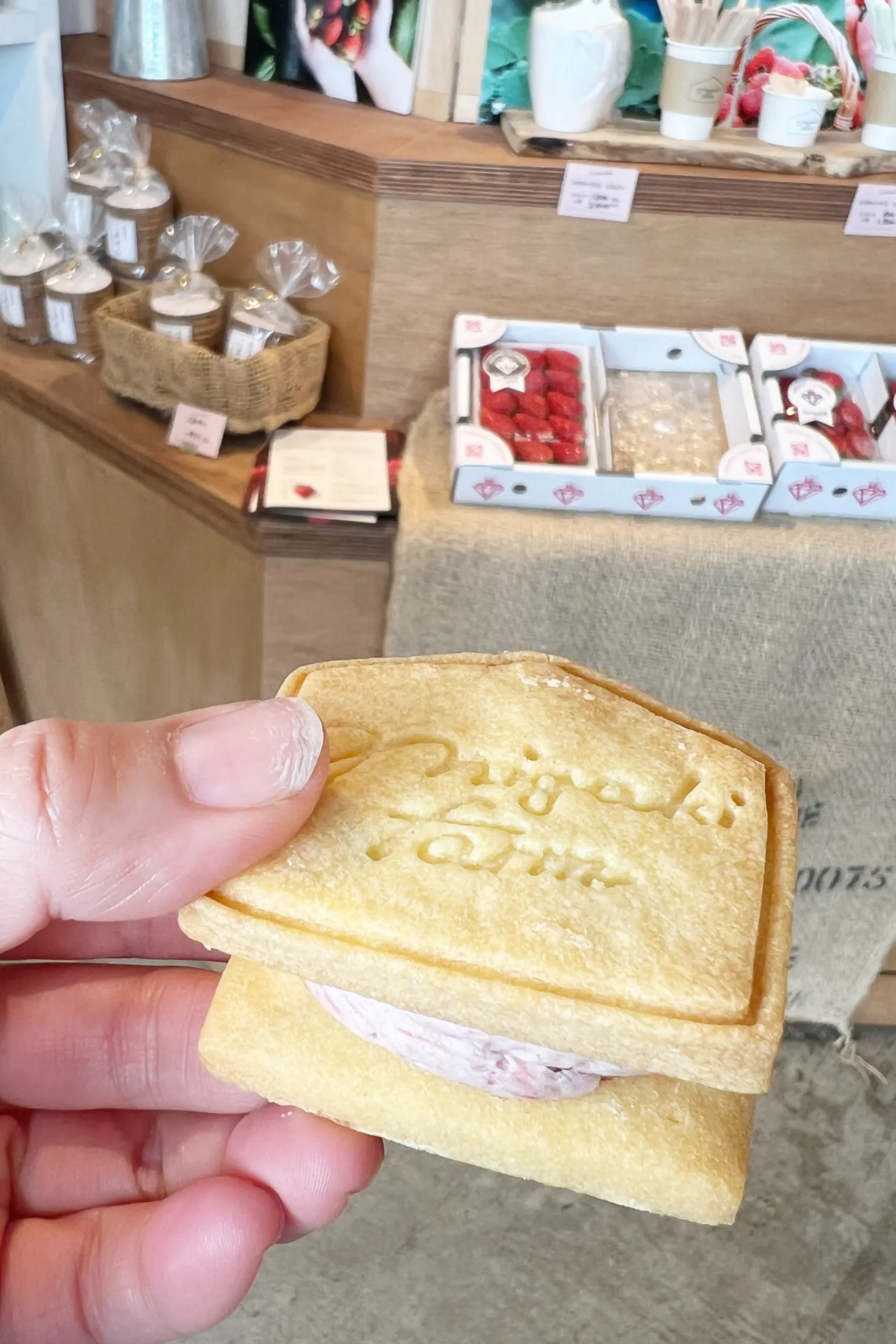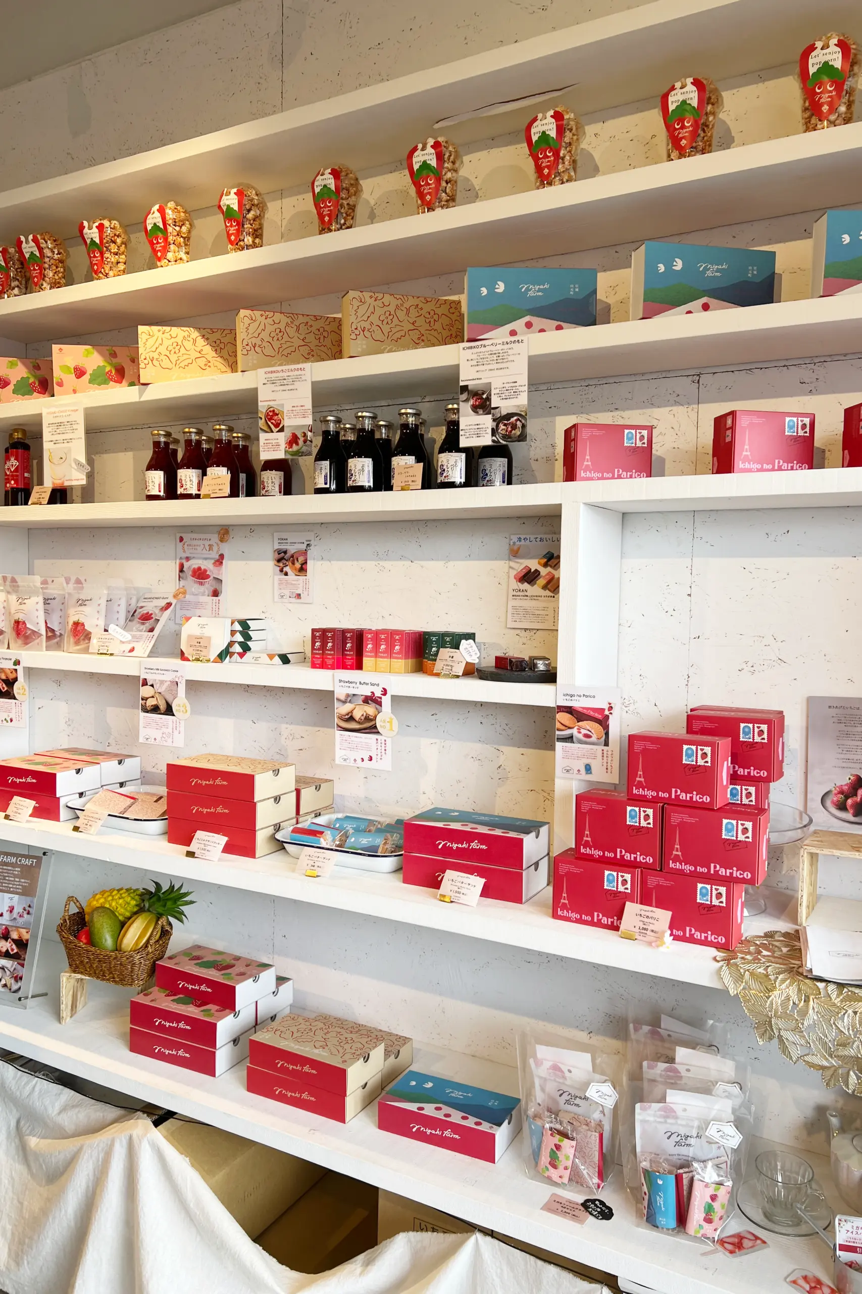 露台兩旁也有很小店,我被MIGAKI FARM的草莓甜點吸引,正好外帶一塊草莓奶油餅乾邊走邊吃!味道很不錯呢!MIGAKI FARM主打用最新科技種植高級草莓,看了一下鑽石形狀的LOGO覺得眼熟,原來我多年前就買過他們家用稀有草莓製成的草莓啤酒。