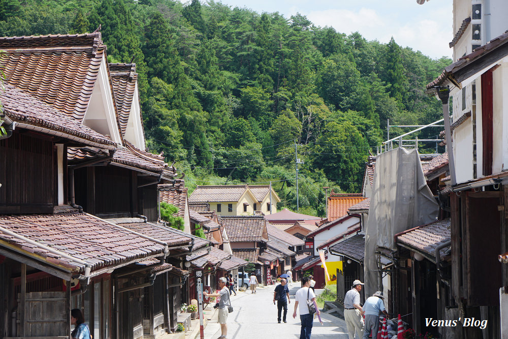 兩旁紅色的建築物是因為加入了當地出產的是鮮紅色顏料「弁柄」(氧化鐵紅)的關係,