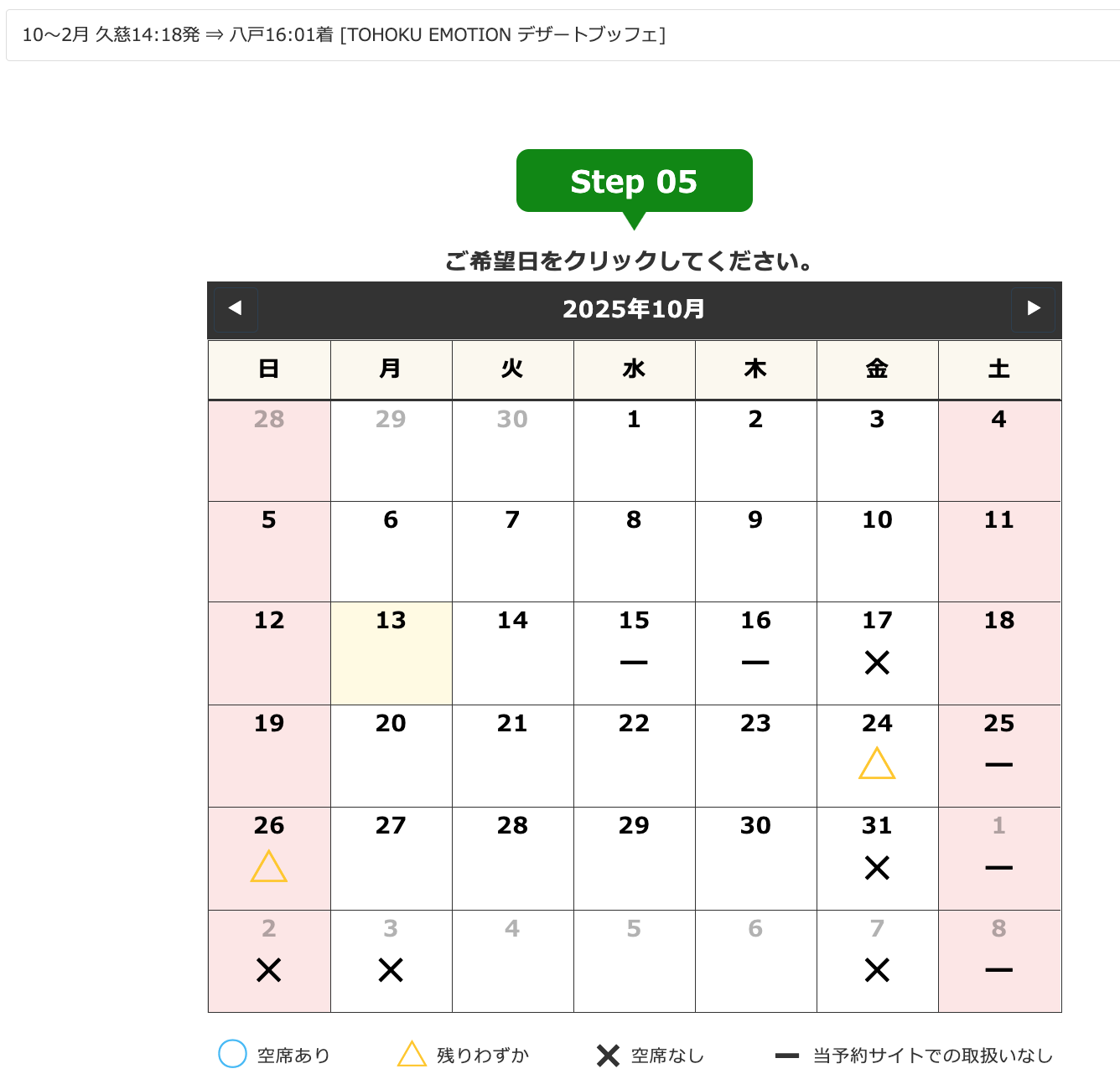 3號車(一般車廂)10,900円/人、1號車(包廂)12,700円/人